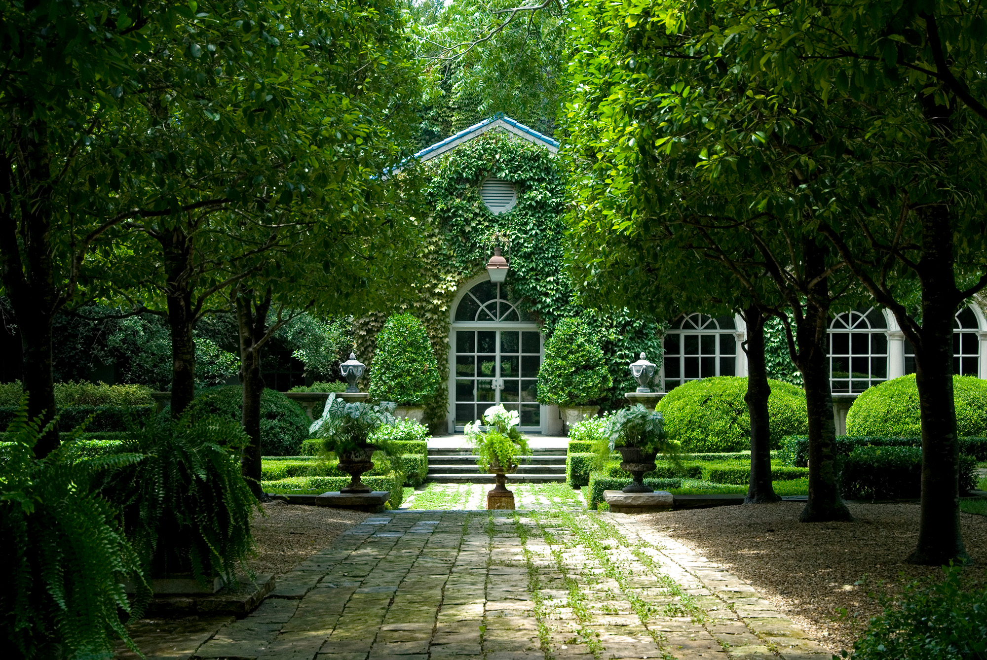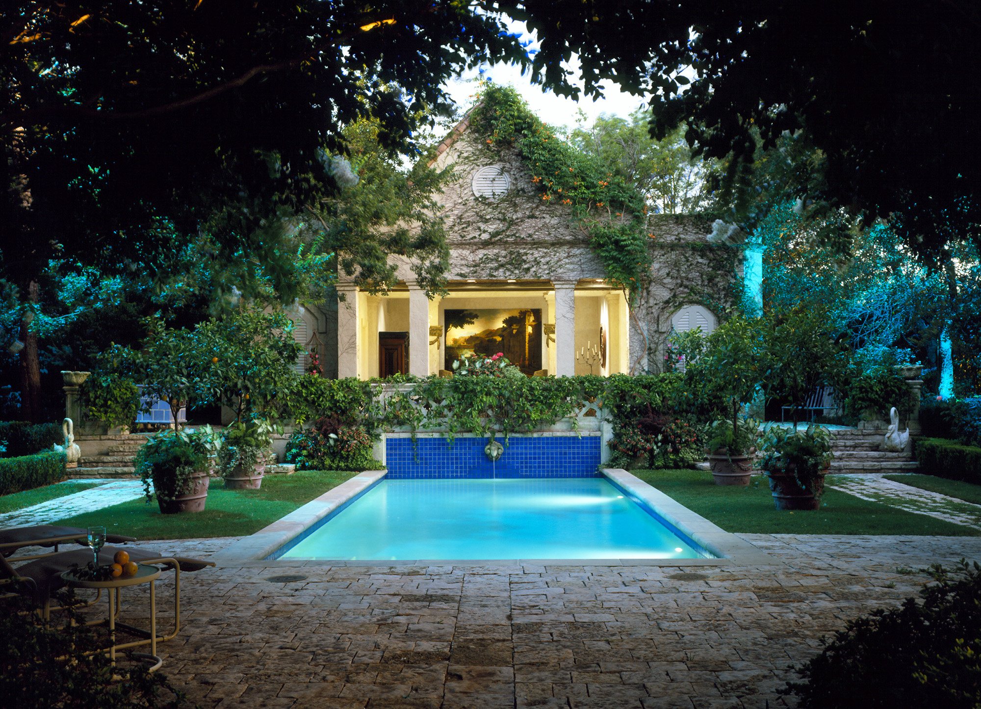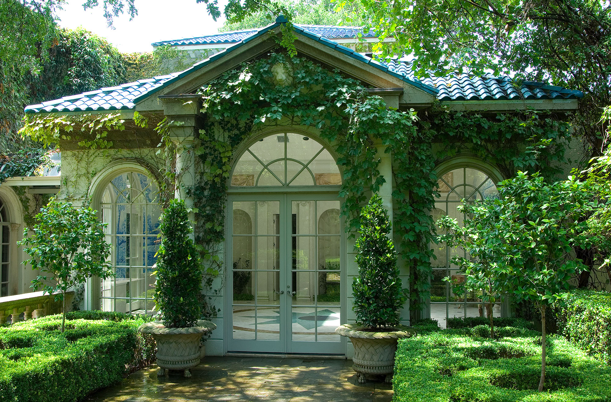 Designed, installed and managed by our firm, the design intent of an aged European estate has been maintained through consistent and appropriate horticultural management. This Mediterranean style garden, created in the early ‘90s, embraces a series of outdoor rooms relating to the home’s “Old World” architectural style. The one-acre estate aesthetically blends a complex assortment of plants ranging from warm and cool season turfs, extensive mixed vines and ground-covers, carefully-selected color, formally-maintained shrubs, specimen plantings and established trees that require horticultural expertise and sensitivity to remain true to the overall design intent. Nevertheless, as in any garden’s development and in order to maintain its health, vigor, and beauty, periodic garden revisions are provided as part of our comprehensive garden management services.