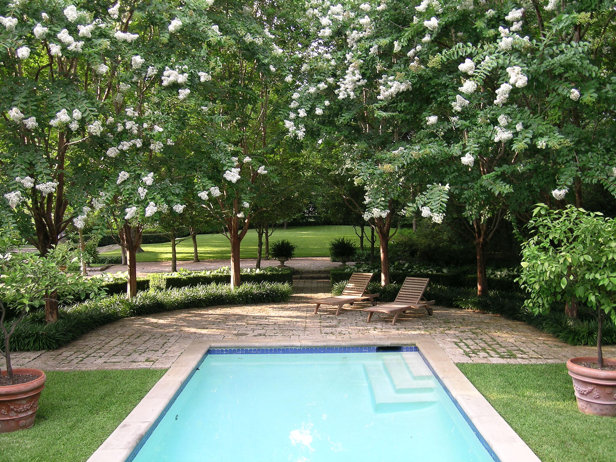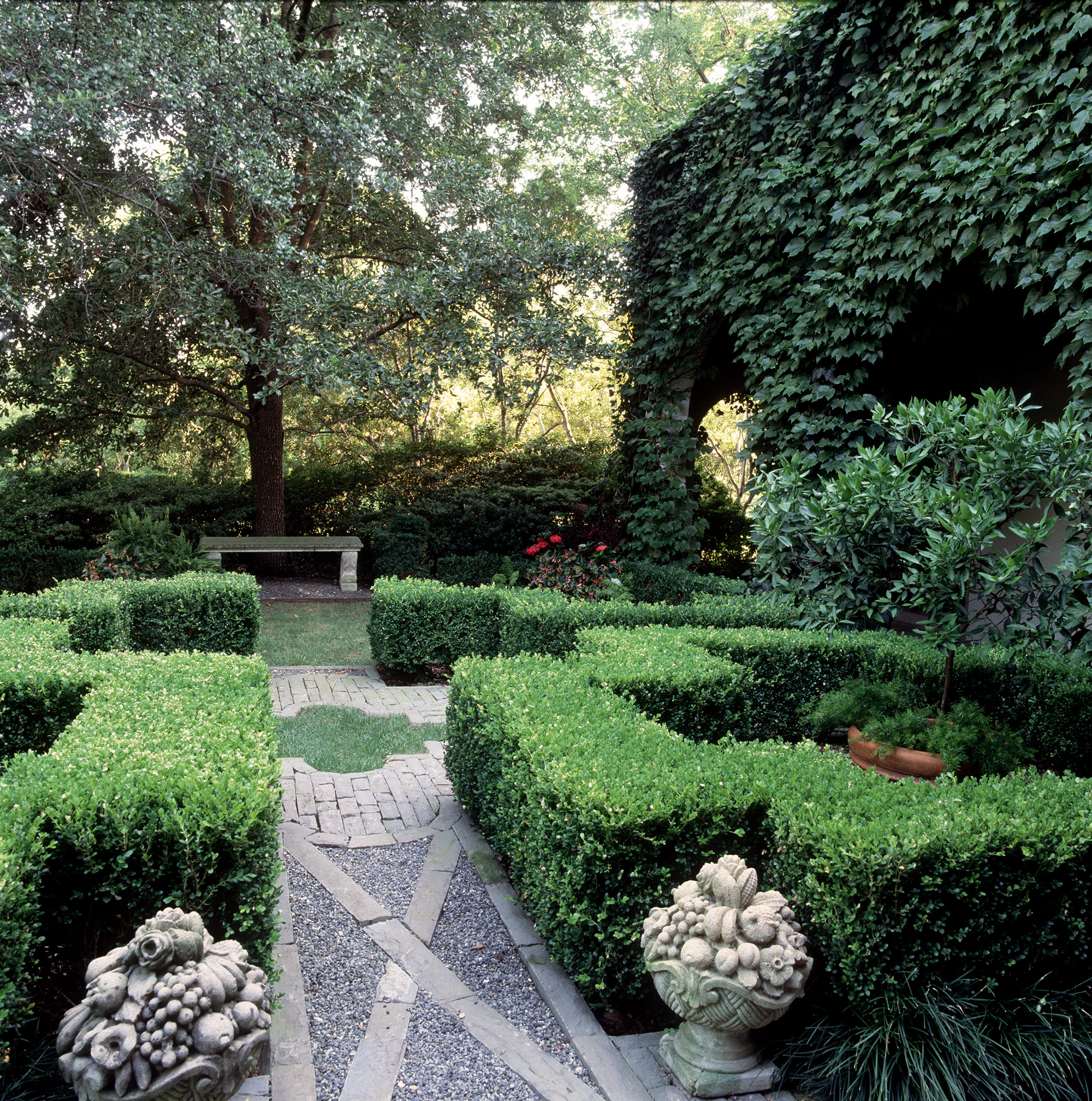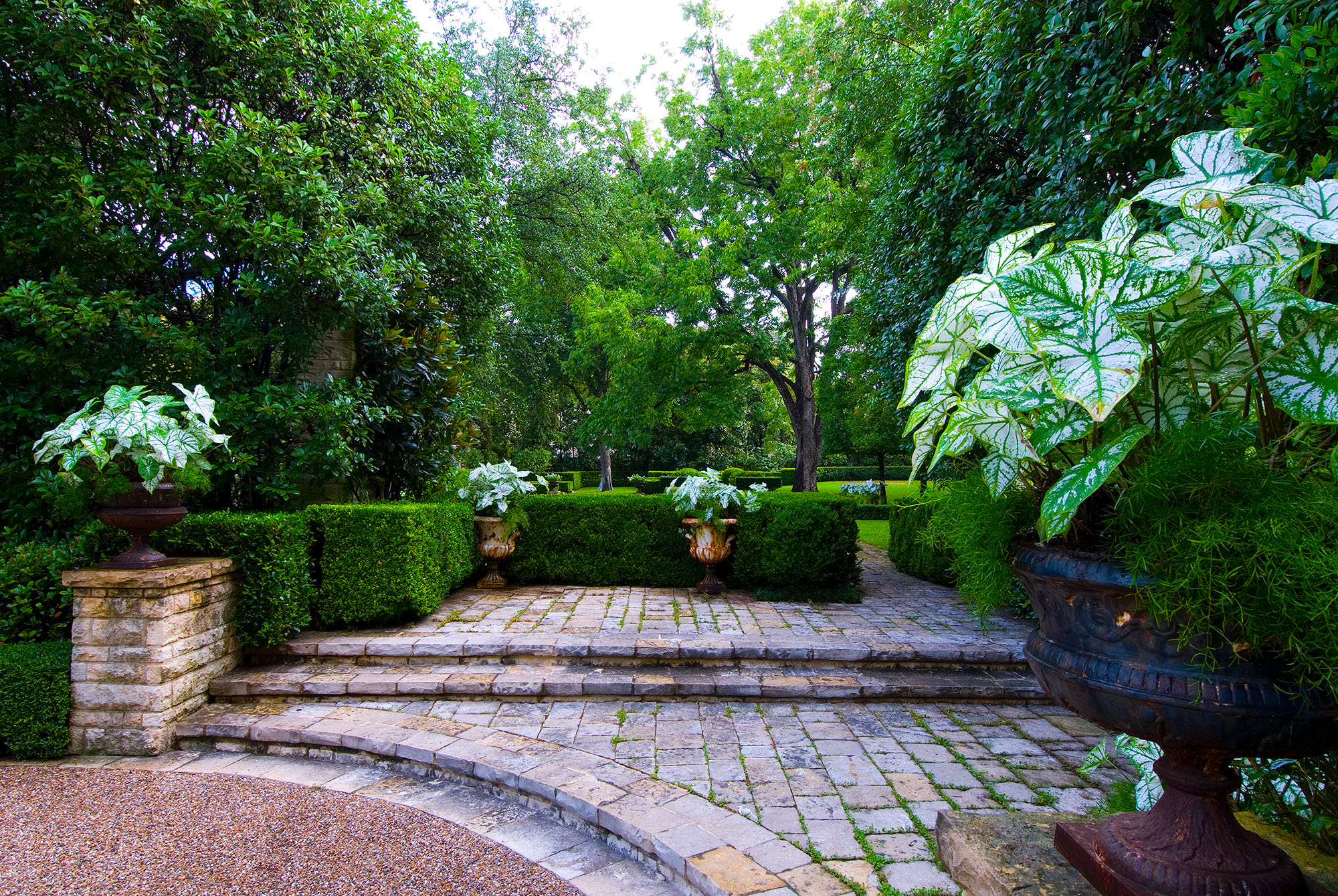 Designed, installed and managed by our firm, the design intent of an aged European estate has been maintained through consistent and appropriate horticultural management. This Mediterranean style garden, created in the early ‘90s, embraces a series of outdoor rooms relating to the home’s “Old World” architectural style. The one-acre estate aesthetically blends a complex assortment of plants ranging from warm and cool season turfs, extensive mixed vines and ground-covers, carefully-selected color, formally-maintained shrubs, specimen plantings and established trees that require horticultural expertise and sensitivity to remain true to the overall design intent. Nevertheless, as in any garden’s development and in order to maintain its health, vigor, and beauty, periodic garden revisions are provided as part of our comprehensive garden management services.